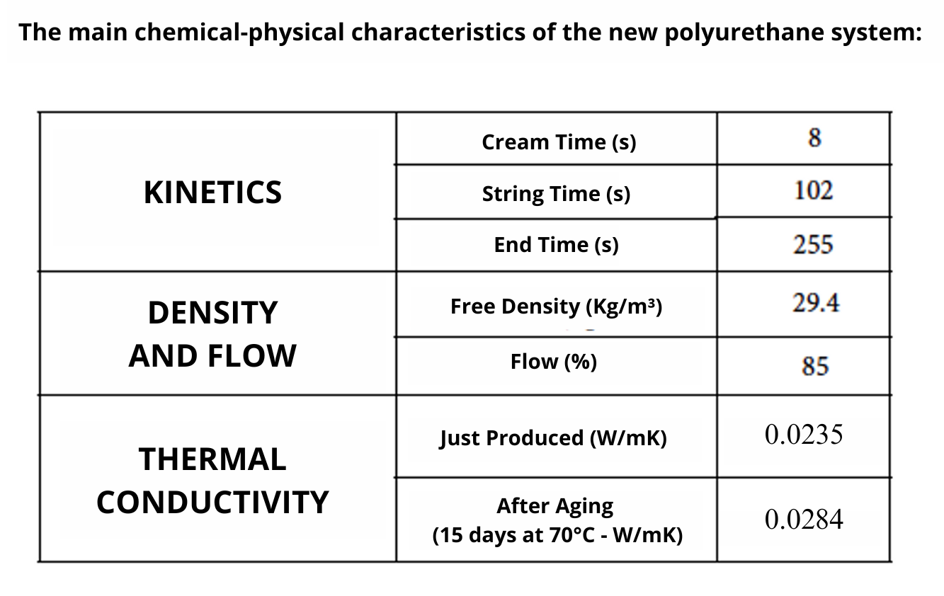 The insulating capacity of the new polyurethane was tested both immediately after production and after 15 days at 70°C: