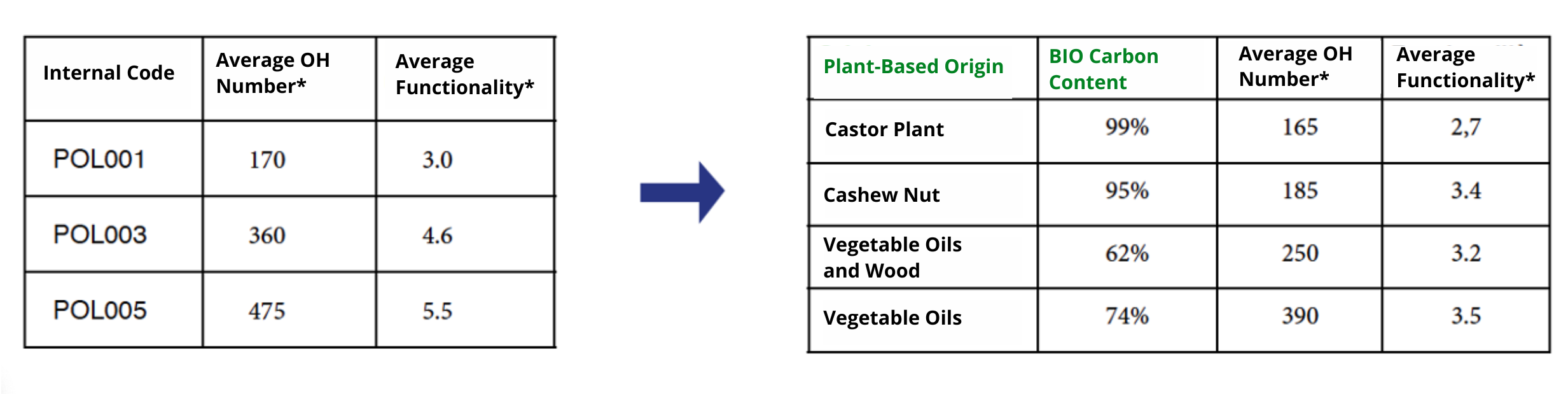 *Average functionality is the parameter that indicates the number of OH functional groups (hydroxyls) present within a single molecule.