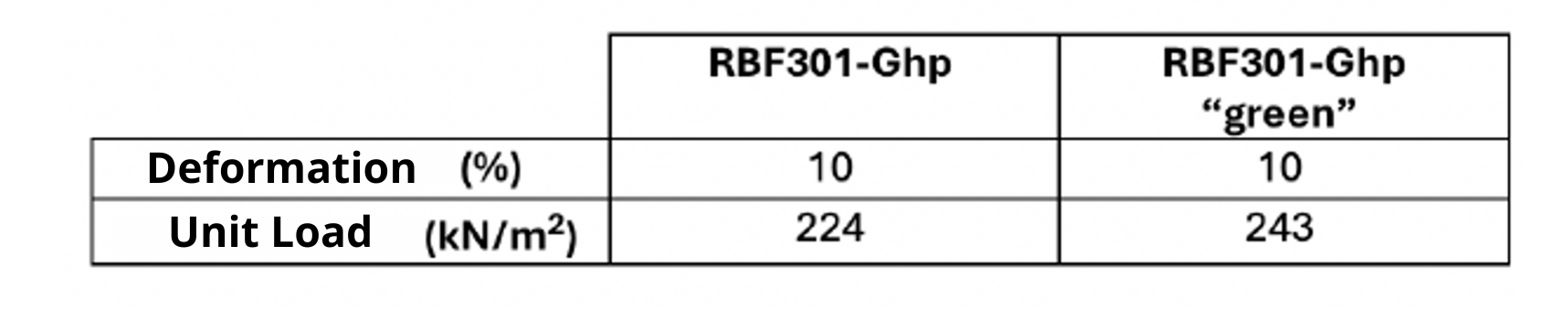 Compression resistance – the new formulation requires 10% more force to deform, demonstrating superior resistance compared to RBF301-Ghp.