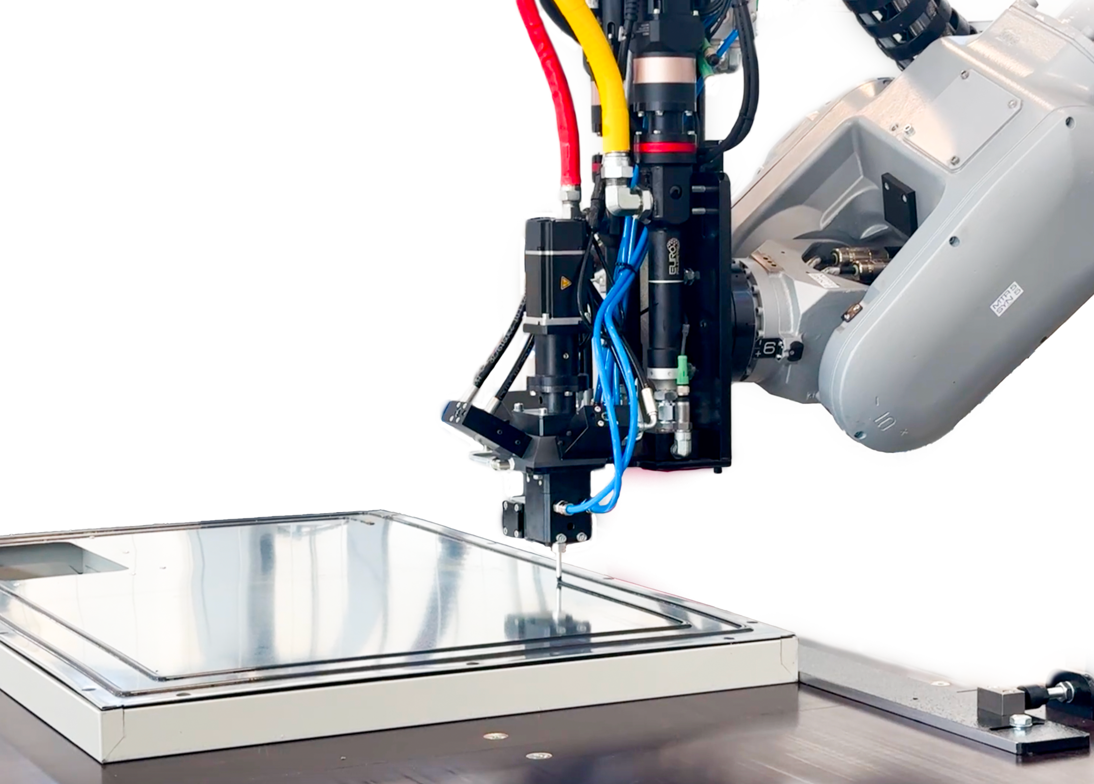 El robot antropomórfico es una solución muy utilizada para la aplicación de juntas de poliuretano bicomponente cuando se requiere alta flexibilidad y precisión en superficies complejas.