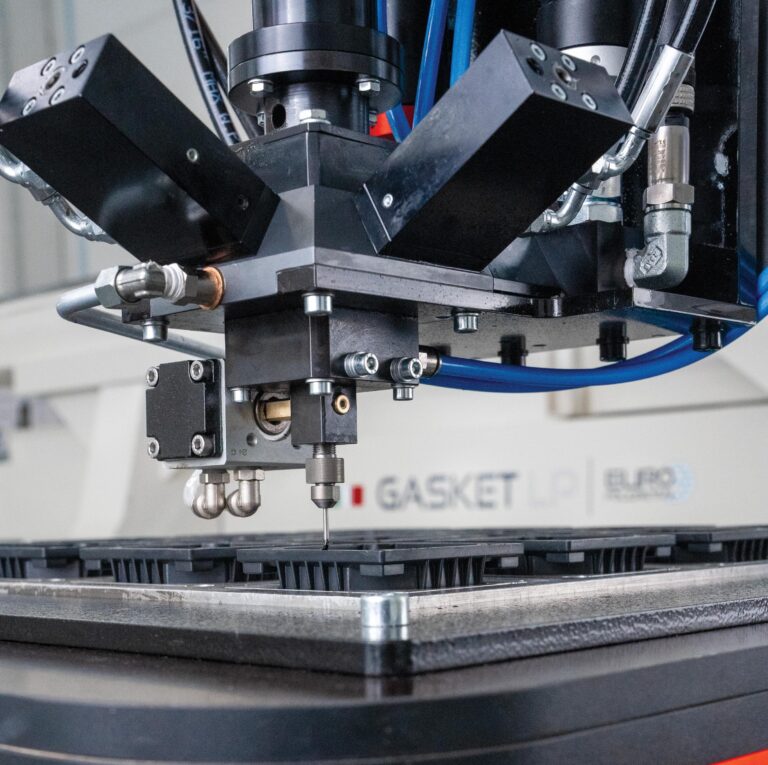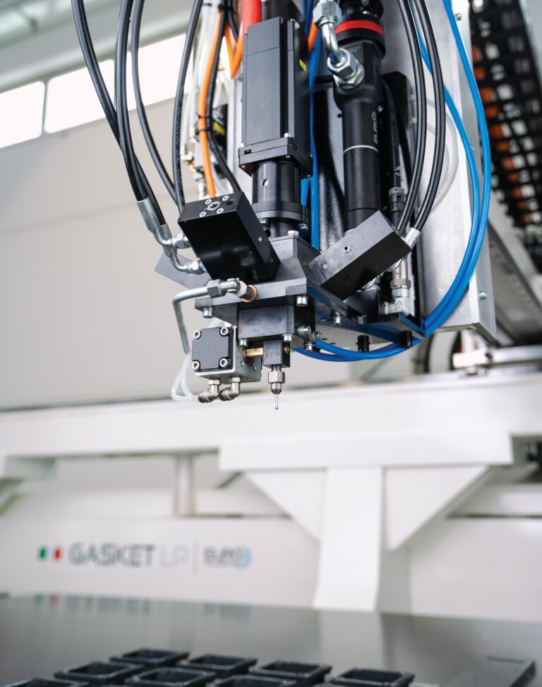 Sistema de juntas de poliuretano FIPFG (Form In Place Foam Gasket) con mezcla de los dos componentes (A+B) dentro de la cámara de mezcla, que permite la aplicación de la junta directamente en el lugar, con extrema precisión y sin puntos de unión.