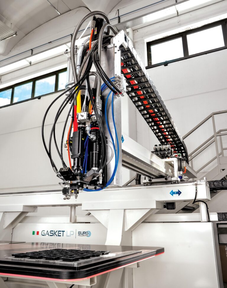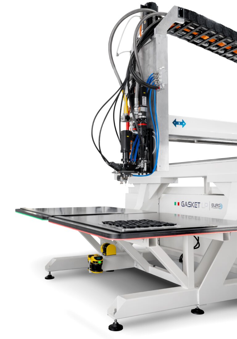 Descubre nuestra instalación de baja presión para la aplicación de juntas de poliuretano bicomponente, diseñada para dosificar, mezclar y aplicar la junta directamente sobre la pieza de forma rápida y precisa.